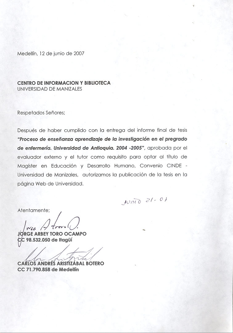 Proceso de enseñanza aprendizaje de la investigación en el pregrado de Enfermería. Universidad de Antioquia. 2004 -2005