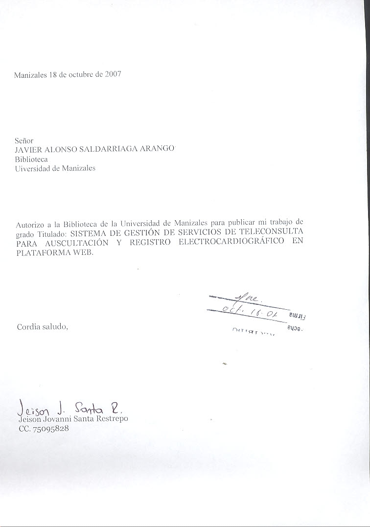 Sistema de gestión de servicios de teleconsulta para auscultación y registro electrocardiográfico en plataforma web Universidad de Caldas – Universidad Nacional – Colciencias