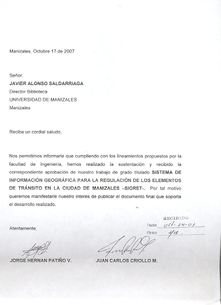 Sistema de información geográfica para la regulación de los elementos de tránsito en la ciudad de Manizales. SIGRET