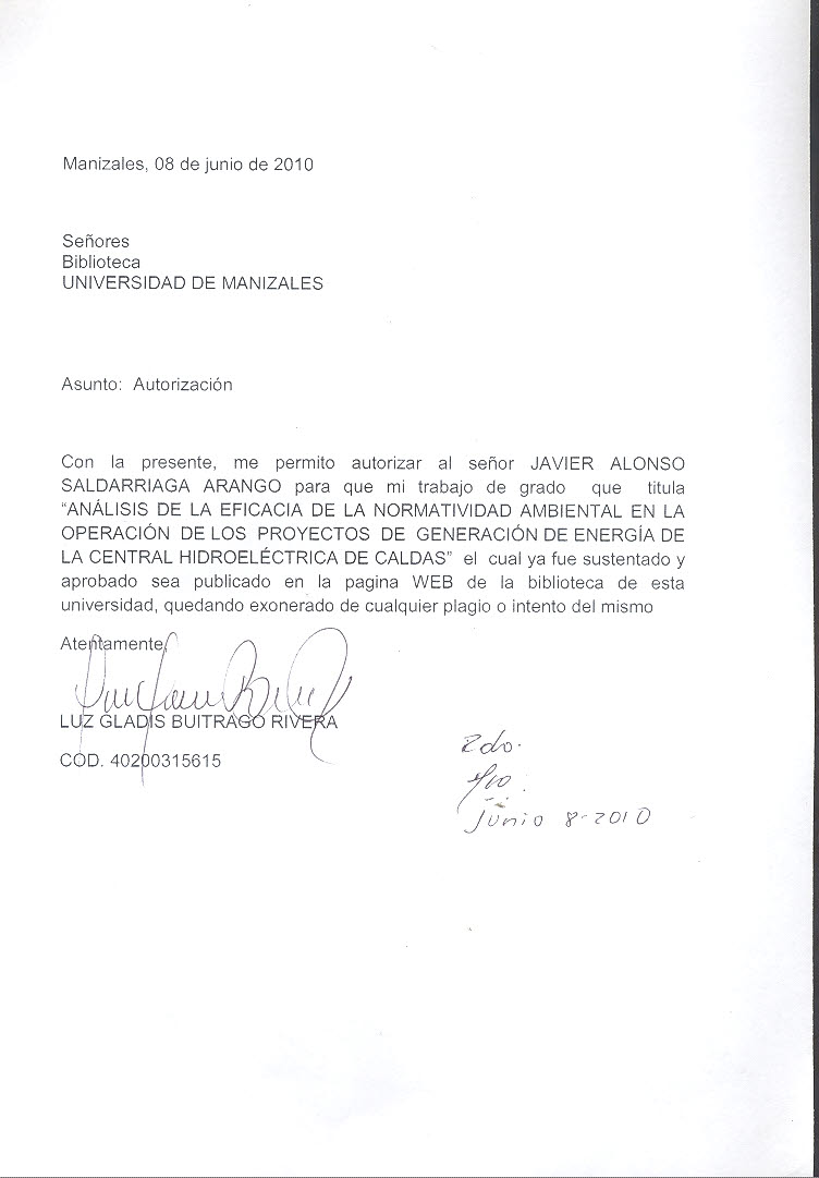 Análisis de la eficacia de la normatividad ambiental en la operación de los proyectos de generación de energía de la Central Hidroeléctrica de Caldas