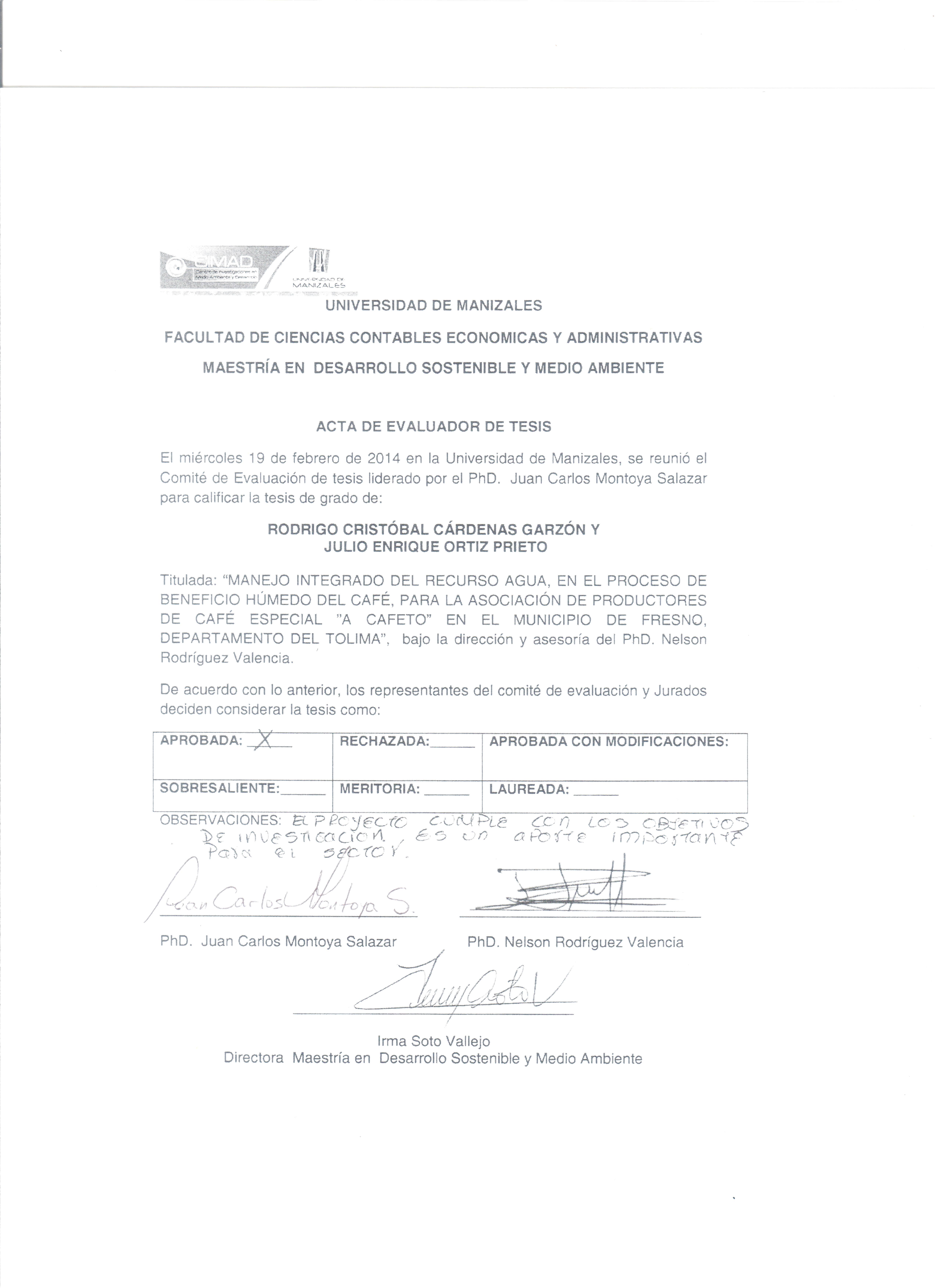 Esta investigación contribuye al manejo integrado del recurso hídrico en el proceso de beneficio húmedo del café.