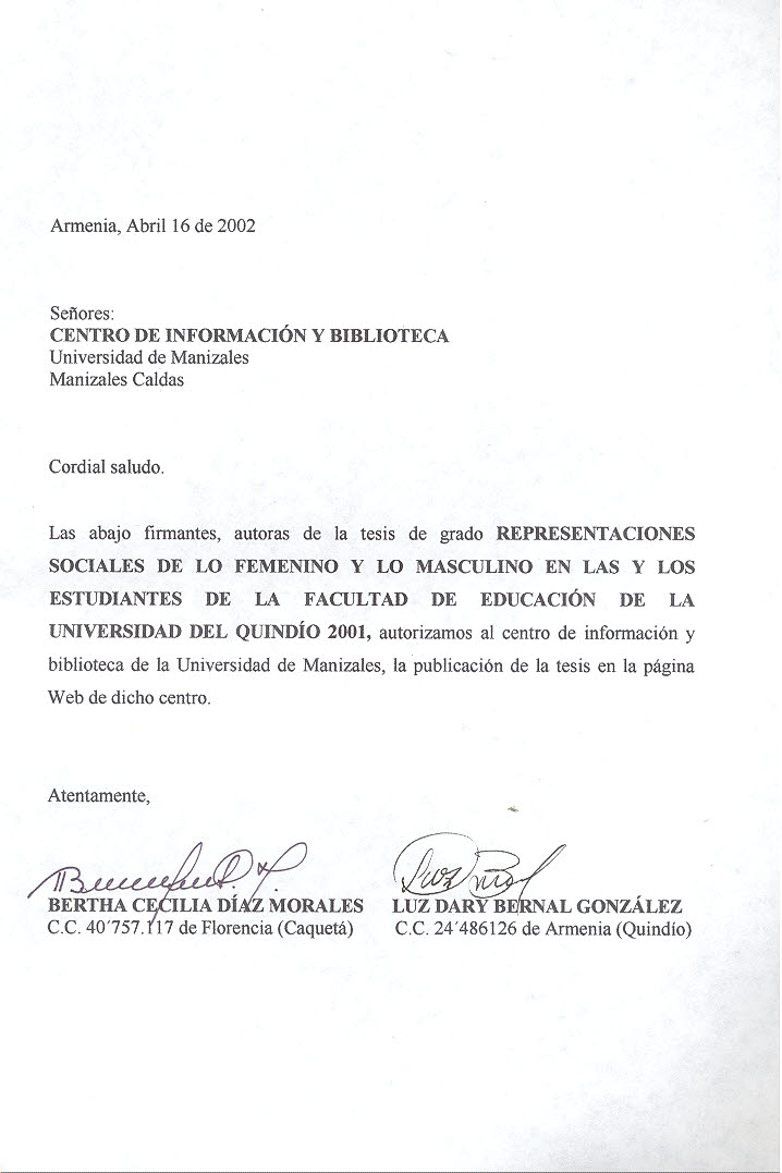 Representaciones sociales de lo femenino y lo masculino en los y las estudiantes de la Facultad de Educación de la Universidad del Quindío 2001
