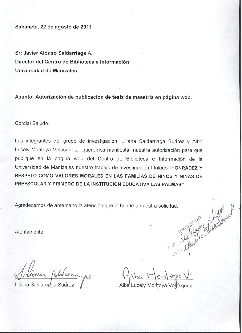 Honradez y respeto como valores morales en las familias de niños y niñas de preescolar y primeros de la Institución Educativa Las Palmas