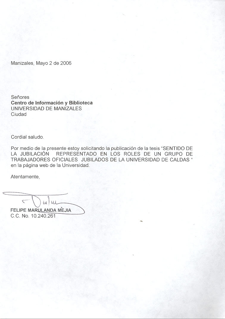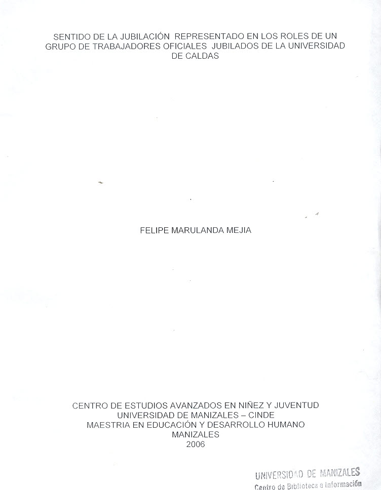 Sentido de la jubilación representado en los roles de un grupo de trabajadores oficiales jubilados de la Universidad de Caldas