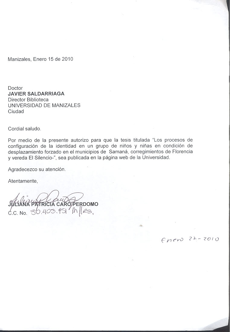 Los procesos de configuración de la identidad en un grupo de niños y niñas en condición de desplazamiento forzado en el municipio de Samaná, corregimientos de Florencia y vereda el Silencio