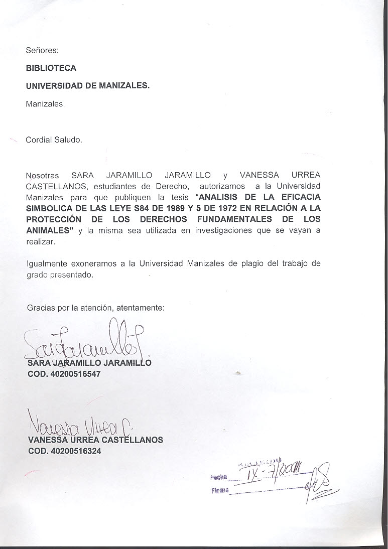 Análisis de la eficacia simbólica de la ley 84 de 1989 y ley 5 de 1972 en relación a la protección de los derechos fundamentales de los animales