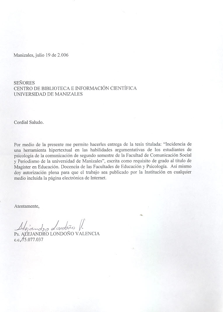 Incidencia de una herramienta hipertextual en las habilidades argumentativas de los estudiantes de psicología de la comunicación de segundo semestre de la Facultad de Comunicación Social y Periodismo de la universidad de Manizales