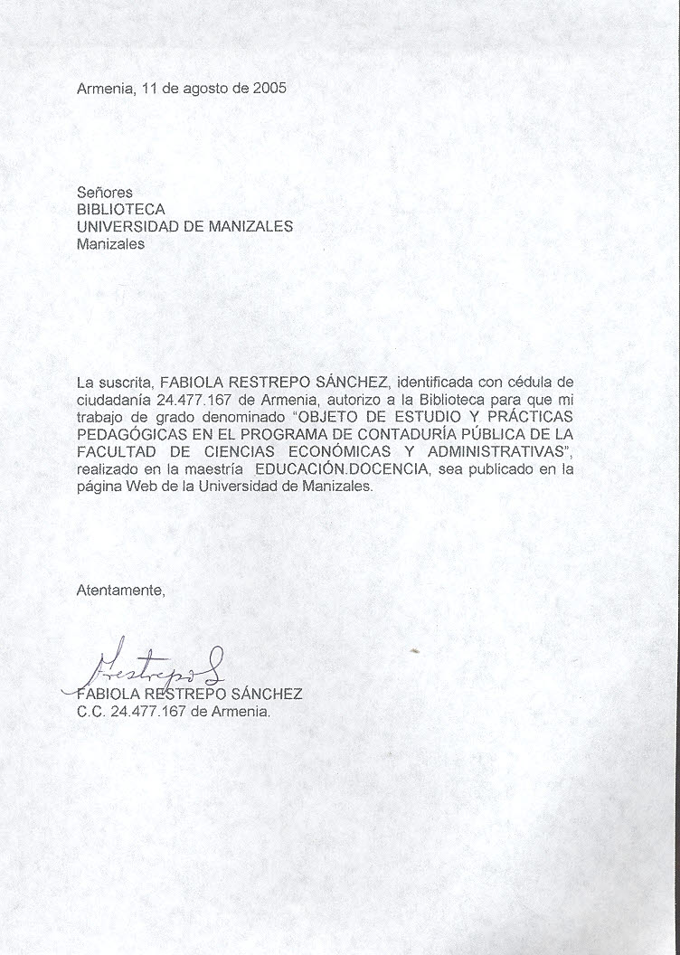 combinación de pedagogías tradicionales con nuevos desarrollos en esta materia, así como el impacto de la alternancia entre las prácticas pedagógicas internas y las externas. En espcial muestra la inexistencia de un objeto de estudio claramente establecido y destaca la intencionalidad de potenciar la responsabilidad social del contador público. En pro de fundar un objeto de es tudio en el programa de contaduría de la universidad del Quindío y consensuar el diseño y puesta en marcha de prácticas pedagógicas que den cuenta de ese objeto de estudio es imprescindible que se continúe con la reflexión crítica de los procesos