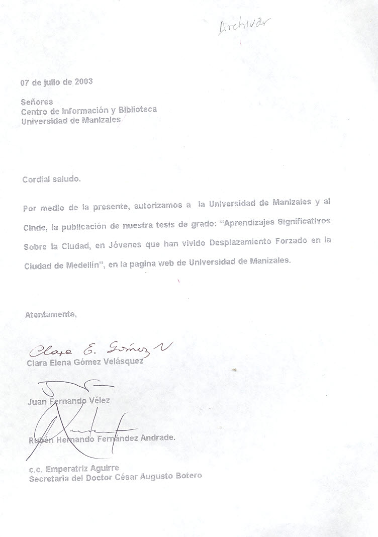 El informe presenta los principales resultados del proceso de investigación acerca de los aprendizajes significativos sobre la ciudad, construidos por jóvenes que han vivido desplazamiento forzado y que habitan en la actualidad en algunos asentamientos ubicados en la parte alta de la zona Centro Oriental de la ciudad de Medellín.