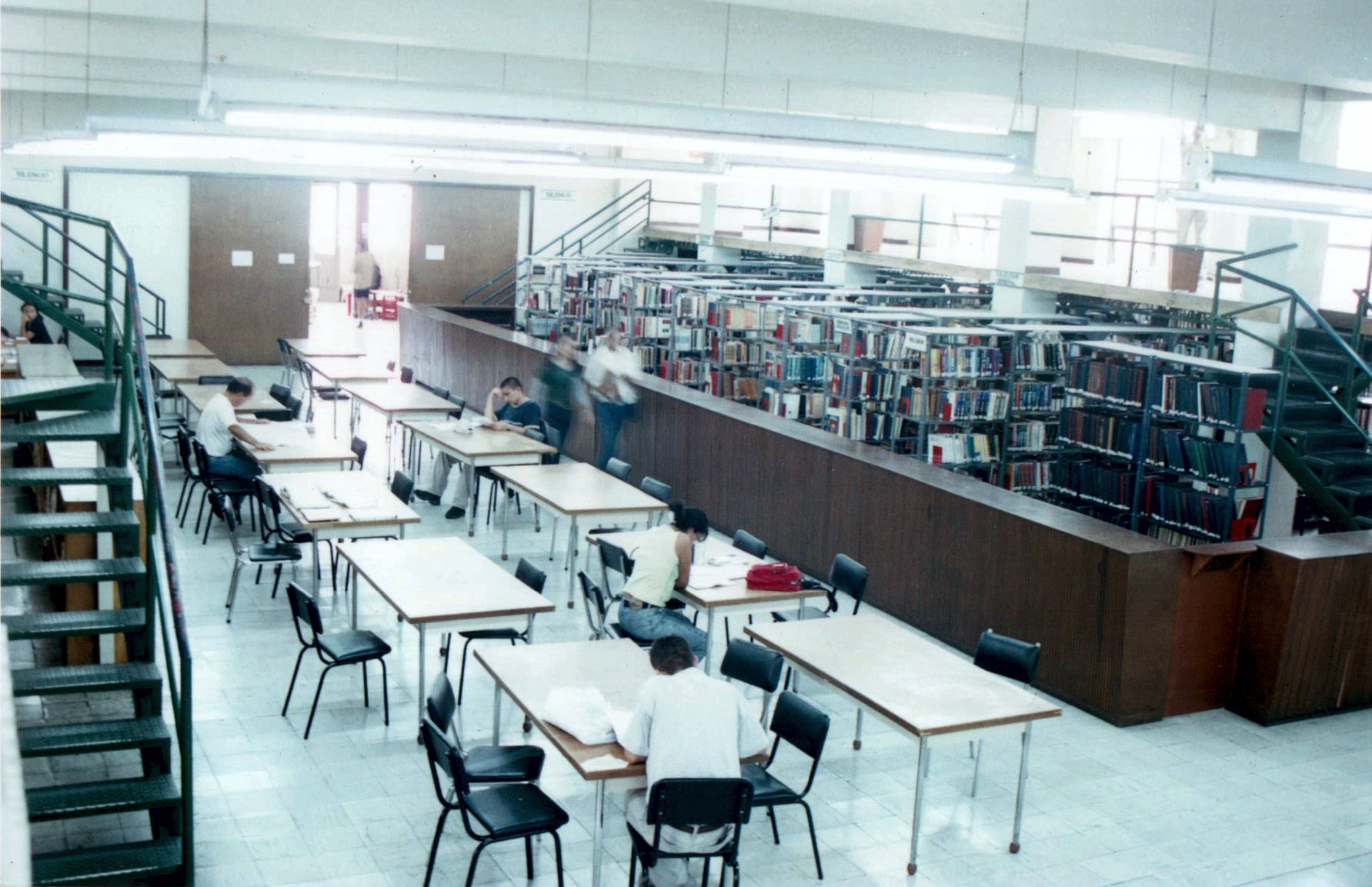 Se puede visualizar la entrada a la biblioteca y la colección de libros, la cual era cerrada en el año 1997.