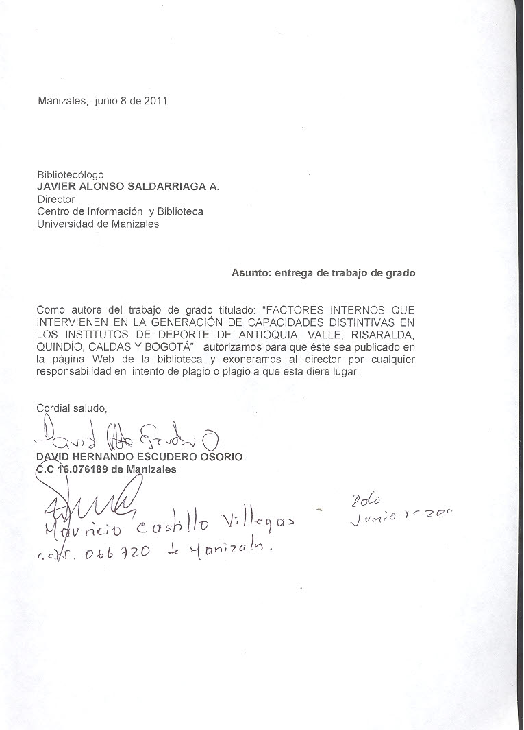 Factores internos que intervienen en la generación de capacidades distintivas en los Institutos de deporte de Antioquia, Valle, Risaralda, Quindío, Caldas y Bogotá