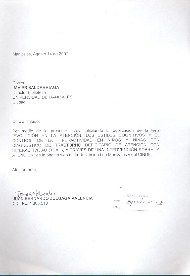 Evolución en la atención , los estilos cognitivos y el control de la hiperactividad en niños y niñas con diagnostico de trastorno deficitario de atención con hiperactividad (TDAH), a través de una intervención sobre la atención