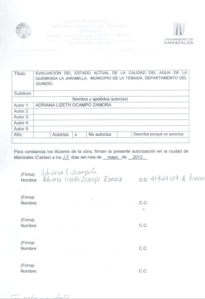 Evaluación del estado actual de la calidad del agua de la quebrada La Jaramilla, municipio de La Tebaida, departamento del Quindío