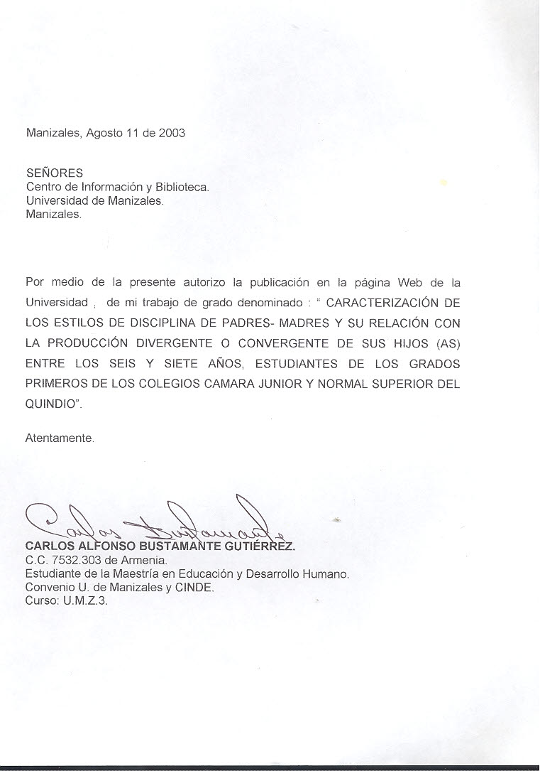 Caracterización de los estilos de disciplina de padres-madres y su relación con la producción divergente o convergente de sus hijos (as) entre los seis y siete años, estudiantes de los grados primeros de los colegios Cámara Junior y Normal Superior del Quindío