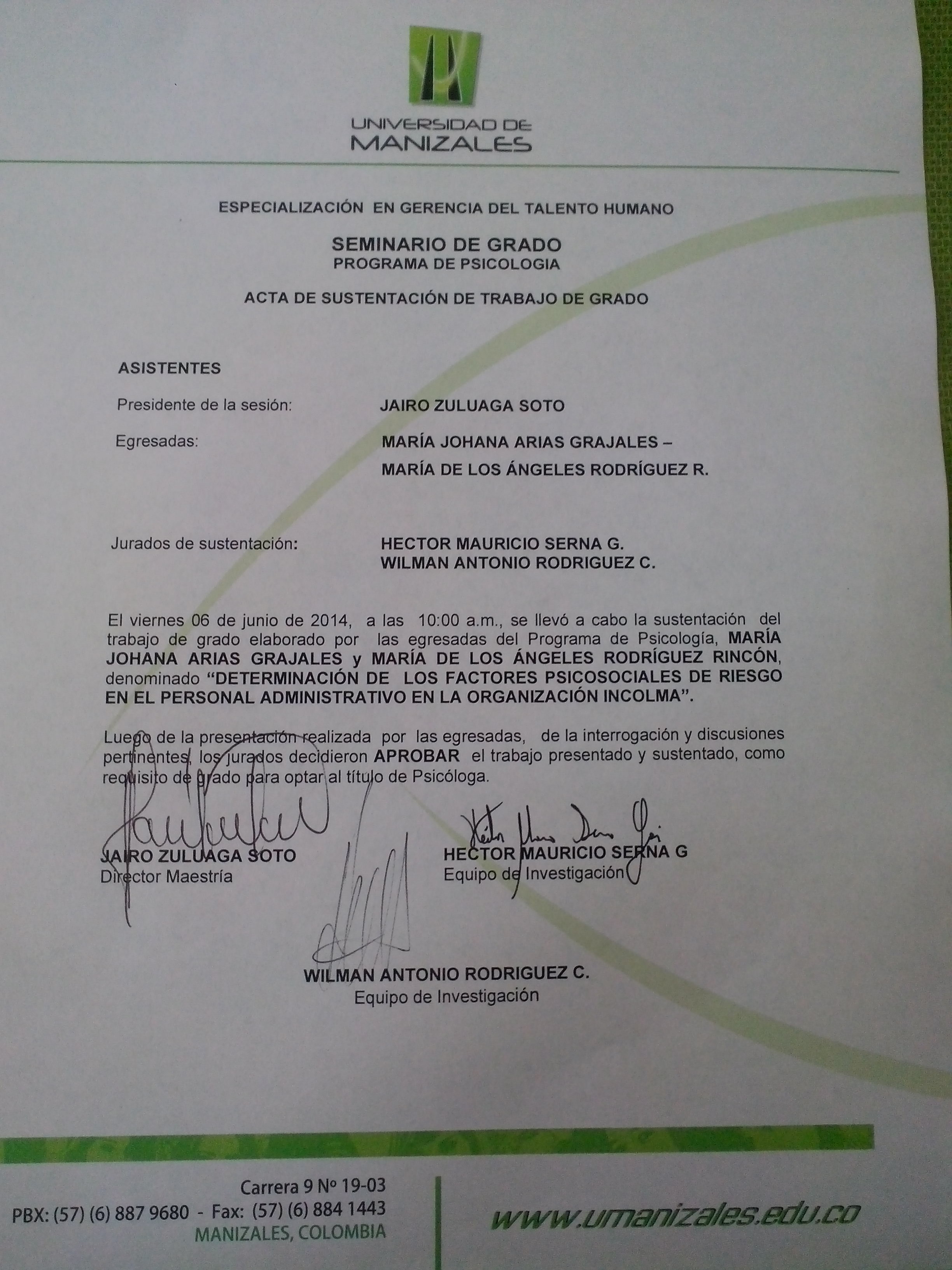 Determinación de los factores psicosociales de riesgo en el personal administrativo en la organización Incolma
