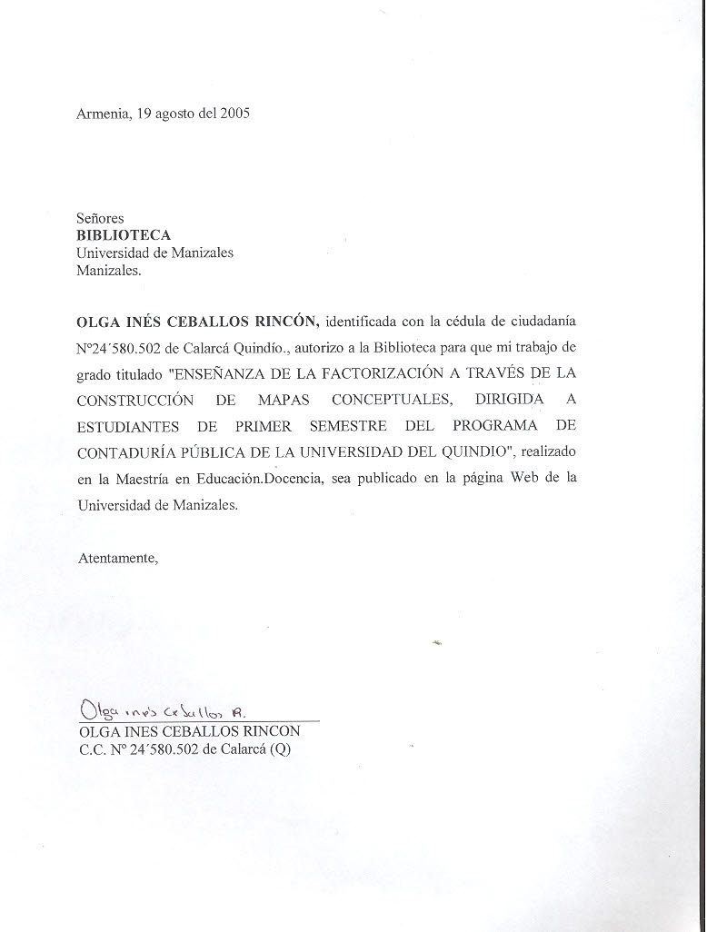Enseñanza de la factorización a través de la construcción de mapas conceptuales, dirigido a estudiantes de primer semestre del programa de Contaduría Pública de la Universidad del Quindío
