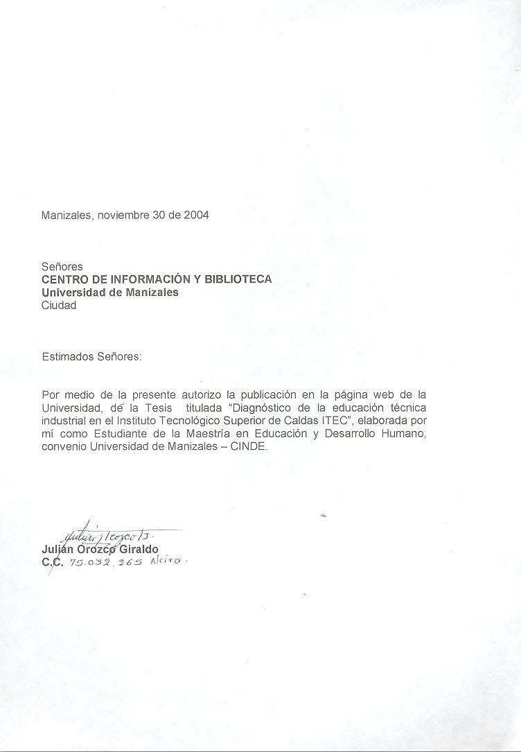 Diagnóstico de la educación técnica industrial en el Instituto Tecnológico Superior de Caldas ITEC