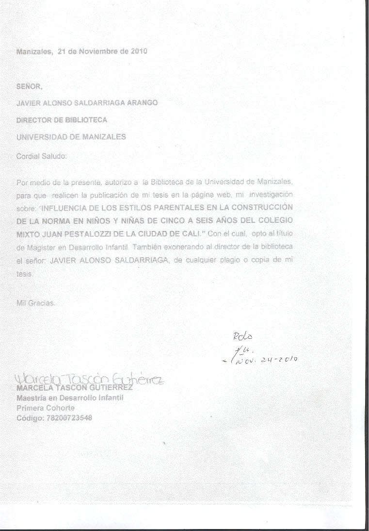 Influencia de los estilos parentales en la construcción de la norma en niños y niñas de cinco a seis años del Colegio Mixto Juan Pestalozzi de la ciudad de Cali