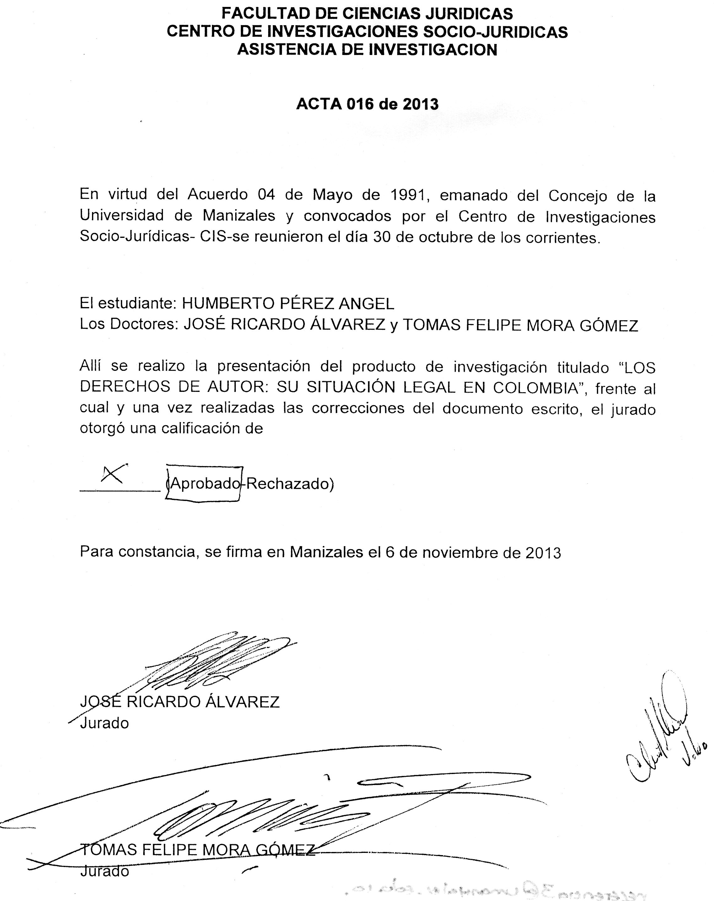 El presente trabajo describe y analiza la evolución de los derechos de autor en nuestro país, especialmente en cuanto al marco jurídico que le permite a los artistas, escritores, compositores y en general a los creadores intelectuales, la protección legal de los referidos derechos. Para tal fin se parte del concepto de derechos de autor, teniendo en cuenta las áreas en las cuales tienen su campo de aplicación; se incluyen los referentes teóricos y los conceptos necesarias para comprender integralmente el contenido del estudio, ya que nos permiten entender el tema de manera suficiente para poder interpretar de manera acertada las normas que regulan y protegen los derechos de autor. A continuación se profundiza en el tema, mediante un seguimiento a las normas que conforman su marco jurídico, fundamentalmente las que están contenidas en leyes y decretos, las cuales son el complemento indispensable de la jurisprudencia pertinente, integran el marco jurídico que les permite a los colombianos que se dedican a la producción intelectual ejercer la defensa de sus derechos de autor en Colombia, y en el exterior gracias a los acuerdos y tratados multilaterales. Finalmente se presentan las conclusiones, mediante las cuales, entre otros aspectos, se establece que el amparo de los derechos de autor en el contexto de su marco legal, constituye para los titulares de dichos derechos, una oportunidad permanente para hacer conocer su obra, vale decir su producción intelectual, y proteger sus derechos.