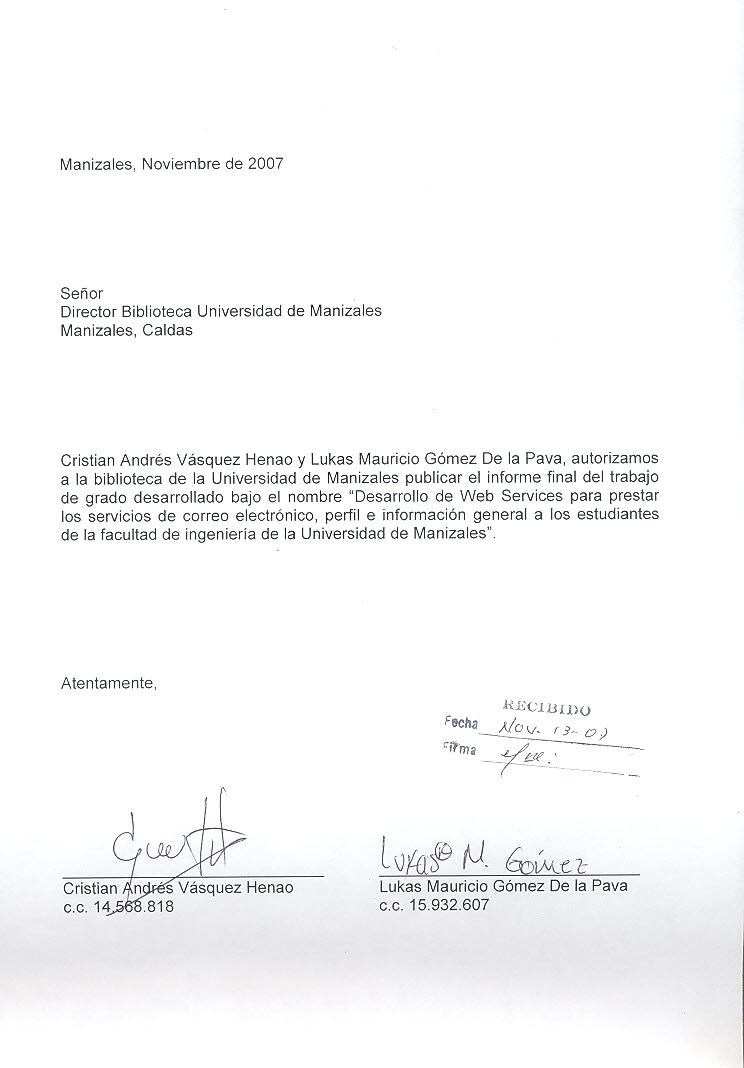 Desarrollo de web services para prestar los servicios de correo electrónico, perfil e información general a los estudiantes de la Facultad de Ingeniería de la Universidad de Manizales