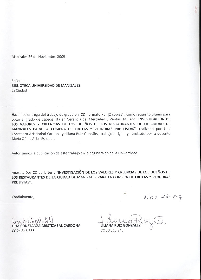 Investigación de los valores y creencias de los dueños de los restaurantes de la ciudad de Manizales para la compra de frutas y verduras pre listas