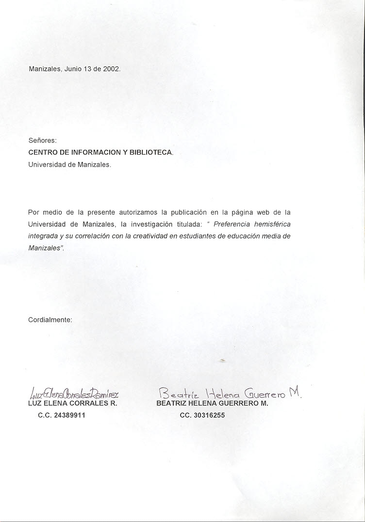 Preferencia hemisferica integrada y su correlación con la creatividad en estudiantes de educación media de Manizales