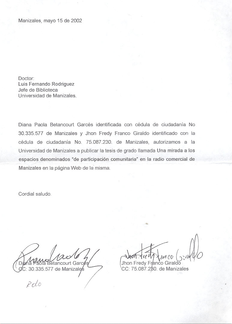 Una mirada a los espacios denominados de participación comunitaria en la radio comercial de Manizales en el año 2001