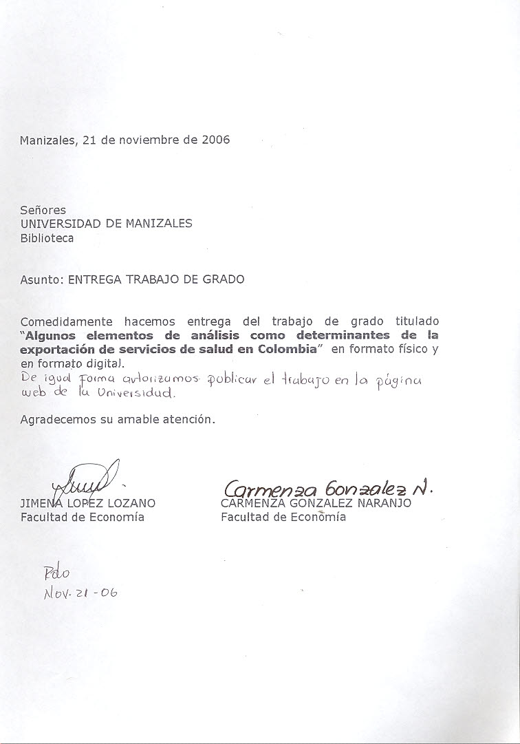 Algunos elementos de análisis como determinantes de la exportación de servicios de salud en Colombia. Monografía